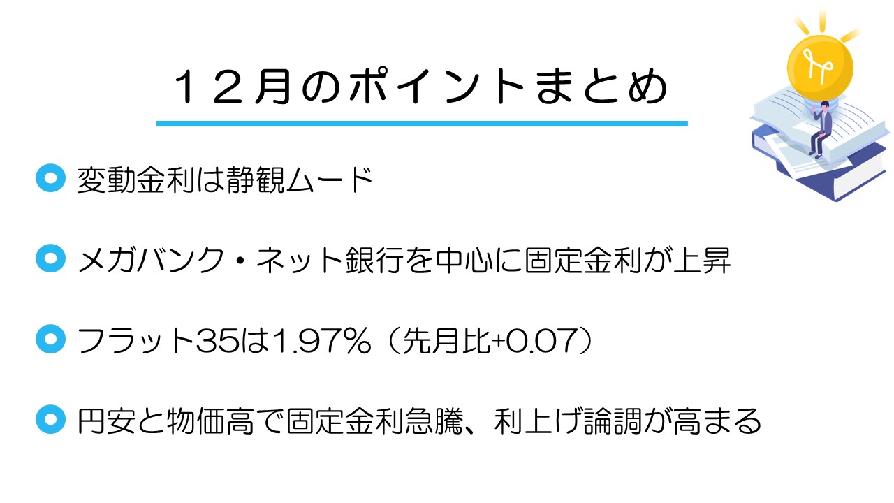 各金融機関の住宅ローン金利を比較して、今月のポイントを解説します。