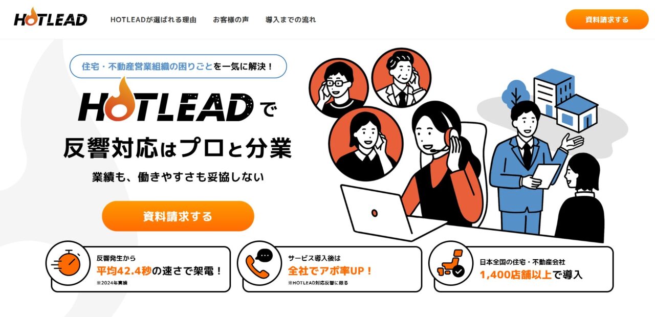 homie株式会社のHOTLEADは、不動産の資料請求をしたお客様の「反響対応」を提供するサービスです。