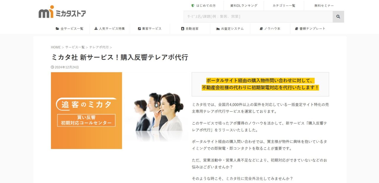 おすすめ不動産営業代行サービス2社目は「ミカタ株式会社」です。