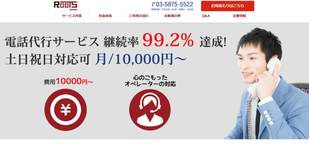 ルーツアウェイク株式会社が保有している顧客リストへ架電営業を行っています。初期費用、月額費用、アポイントからの成約手数料が無料で利用できる成果報酬型の架電営業代行サービスです。